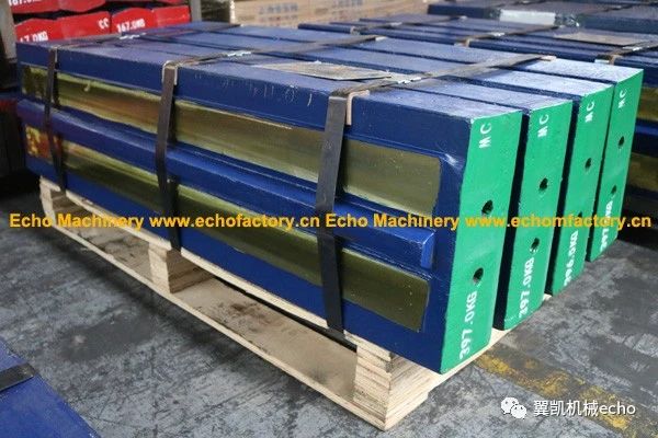 在如下板錘中,綠色代表合金鋼復(fù)合陶瓷,通過調(diào)整材質(zhì)配方和熱處理工藝,使板錘更加耐磨,適用于破碎工況嚴(yán)峻的建筑垃圾。板錘背面有4個(gè)機(jī)加工凸臺,確保100%能正確安裝。