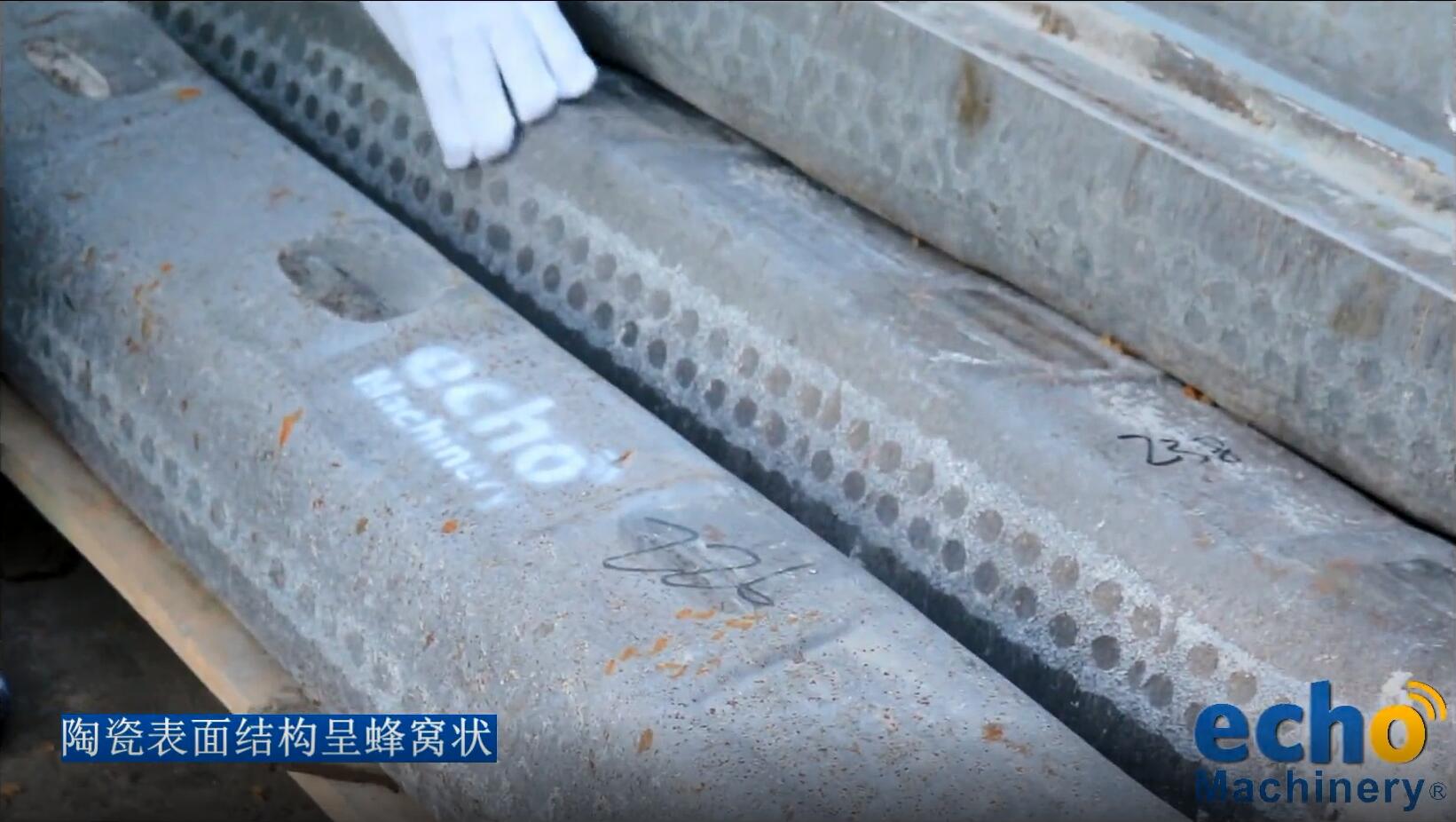 從圖片中可以看到,我們的陶瓷表面結構呈蜂窩狀,非常堅硬,同時又具備良好的韌性,從而大大提升了板錘的耐磨性。