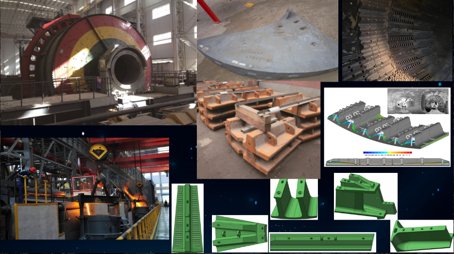 Hello, glad to introduce our production line and our SAG ball mill liner to you: 1. Our production and manufacturing base of large-scale mining mill wear-resistant liners, heavy- duty iron castings and large-scale non-ferrous castings with advanced technology in the domestic scale, annual capacity over 30000 tons. 2. Our liner range includes large wear liners and screw liners. 3. We're using discrete element (EDEM) and MillTraj simulation technology to analyze and verify the liner structure, and 3D scanning wear analysis database, which can help us to produce the liner with significantly increased lifespan. 4. We have rich experience in the SAG ball mill liners, serve worldwide and domestic customers with satisfied solutions. For more informations, please feel free to contact us today.