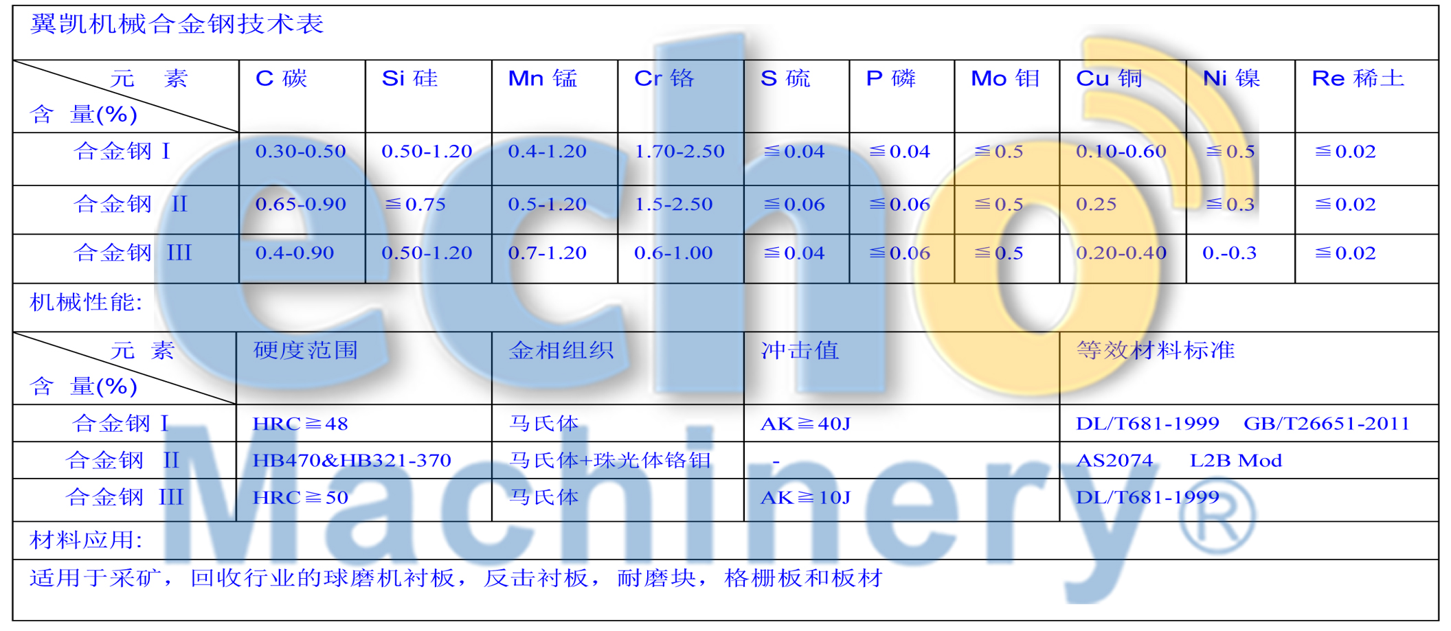 特點:韌性好,破碎風(fēng)險低,使用壽命是高錳材料的1.5 ~ 2倍。