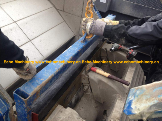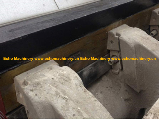 C:使用過的板錘和反擊襯板照片,經過一周左右(40小時)破碎后: